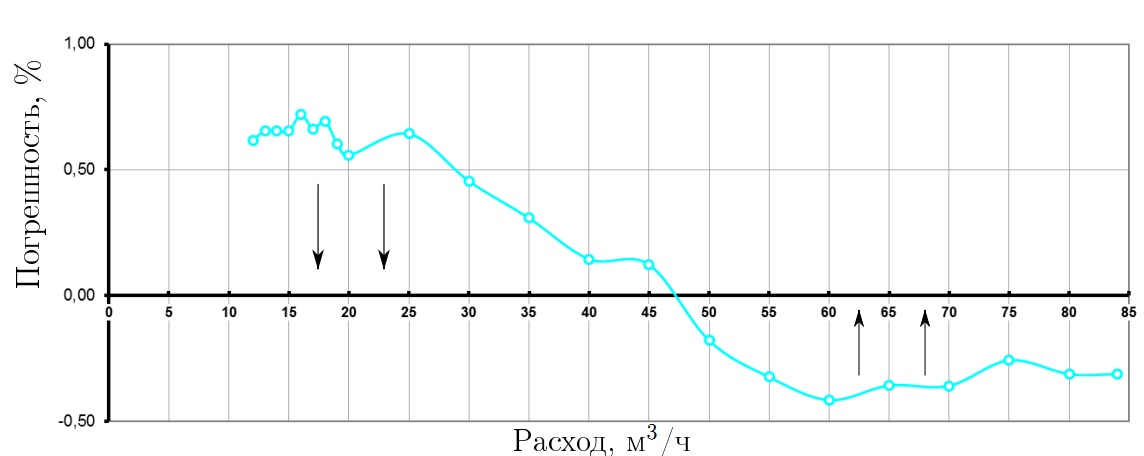 до ±0,5% при измерении расхода жидкостей до ±0,7% при измерении расхода газа и пара |